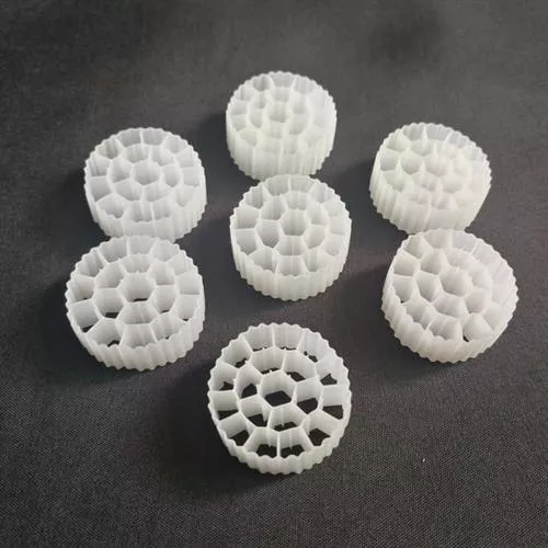 Giá thể vi sinh dạng bánh xe hay còn được gọi là Đệm vi sinh dạng bánh xe được ứng dụng rộng rãi trong các hệ thống xử lý nước thải với hiệu quả cao, tiết kiệm diện tích, tối ưu hóa chi phí đầu tư và vận hành hệ thống xử lý nước thải. Giá thể vi sinh dạng bánh xe là một loại vật liệu được bổ sung vào quá trình xử lý nước thải bằng phương pháp sinh học để tăng diện tích tiếp xúc giữa vi sinh vật và nước thải. Từ đó gia tăng sinh khối giúp quá trình phân hủy sinh học diễn ra nhanh chóng với hiệu suất xử lý cao, giảm thiểu được lượng bùn sinh ra. Tặng hiệu quả và sự vận hành ổn định của hệ thống. Giảm thiểu mùi hôi do sự phân hủy sinh học của các hợp chất hữu cơ.